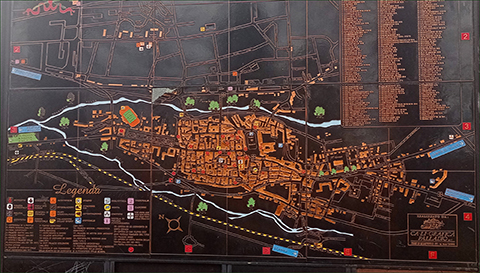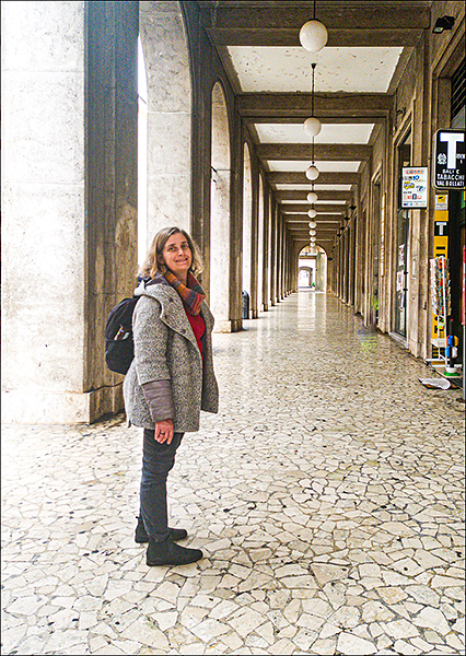 A vasútállomás kijáratánál ilyen szép, dombornyomott várostérkép található. Hosszasan sétáltunk be a városba, az első nagyobb épület a Cattedrale di San Panfilo volt, innen egy nagy park kezdődik, a Villa Comunale, majd elértünk egy szép árkád alá.